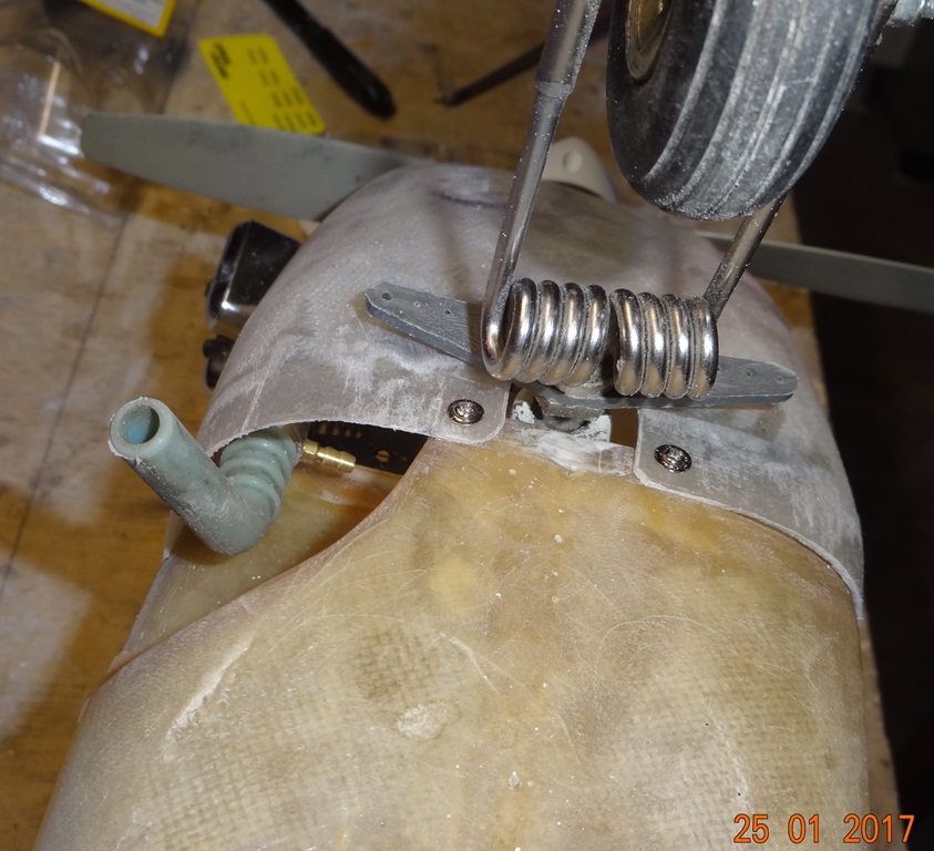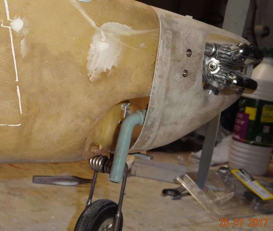 J'ai encore pensé à une autre amélioration : on pourrait orienter le silencieux perpendiculairement au fuselage devant la jambe de train et le faire sortir avec le coude silicone vers le bas. Cela permettrait de boucher l'ouverture assez grande prévue d'origine dans le fuselage pour l'ancien silencieux 2T. Là aussi je n'en ai plus le courage, je ne recherche pas la maquette à 100 %, surtout sur celui là, dont je ne suis pas sûr des qualités de vol maquette compte tenu de son rapport taille / poids. je serai sans doute plus regardant lorsque je m'intéresserai au Graupner de 2.15 m, dont les qualités de vol m'ont été confirmées par son cousin de Eurolight que tu connais bien.