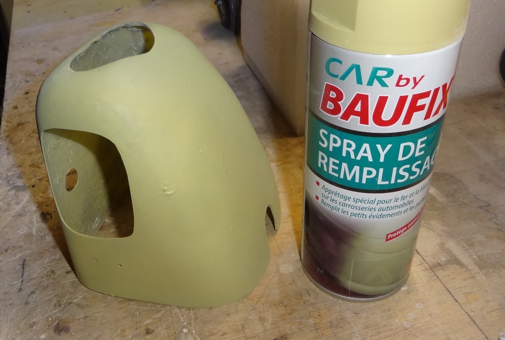 Après un premier ponçage, assez grossier, première couche de spray de remplissage (c'est tout simplement une sous-couche)