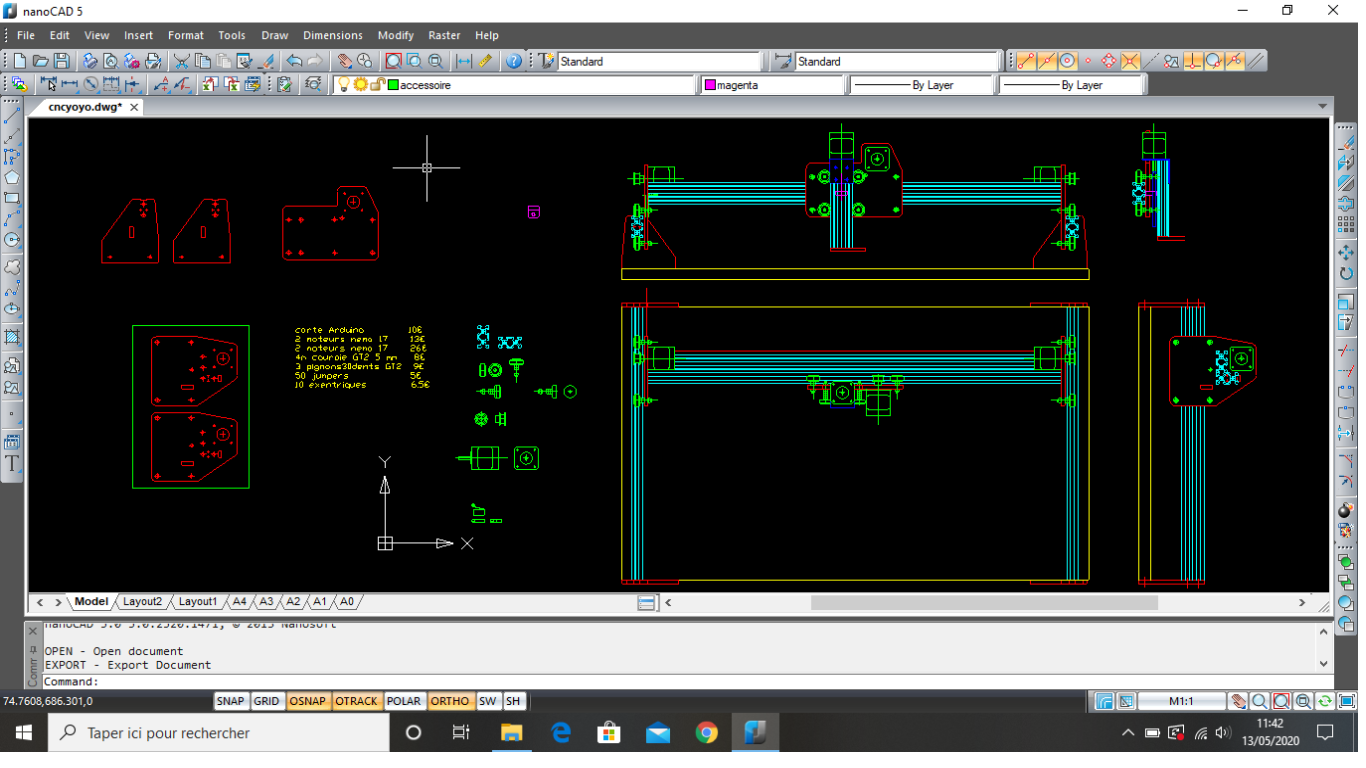 Première étape, réalisation du plan de la CNC sur nanoCAD.