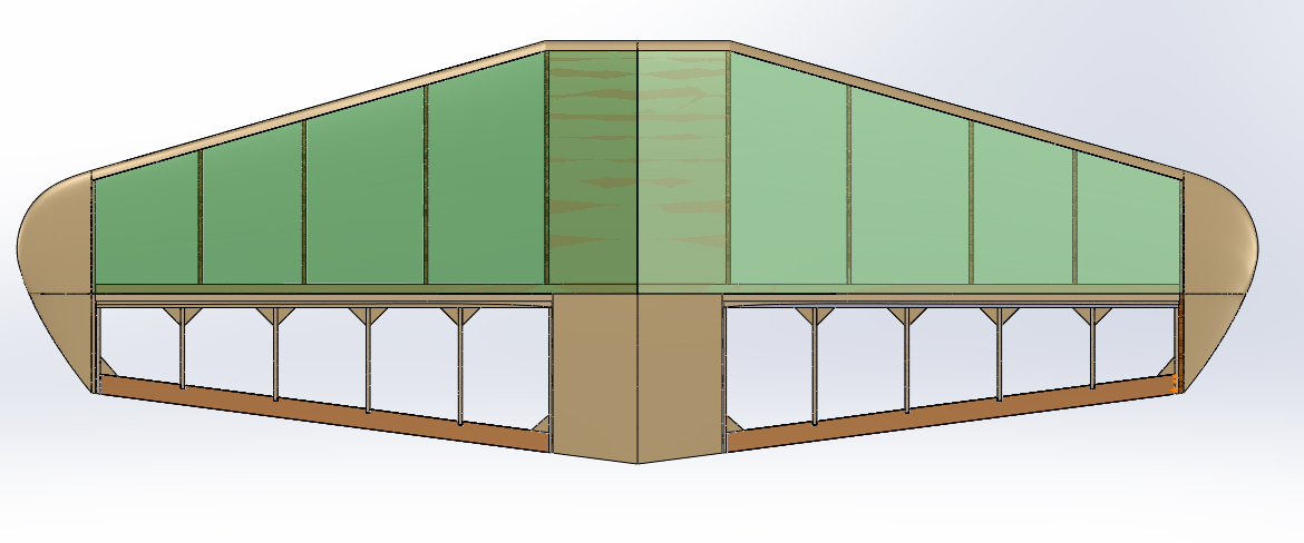 Parallèlement au collage de bois, j en demarre aussi la construction virtuelle. La partie fixe est terminee, le reste se cree par symetrie. La partie mobile n est qu un volume pour l instant. C est dans ce volume que je vais decouper les pieces necessaires.