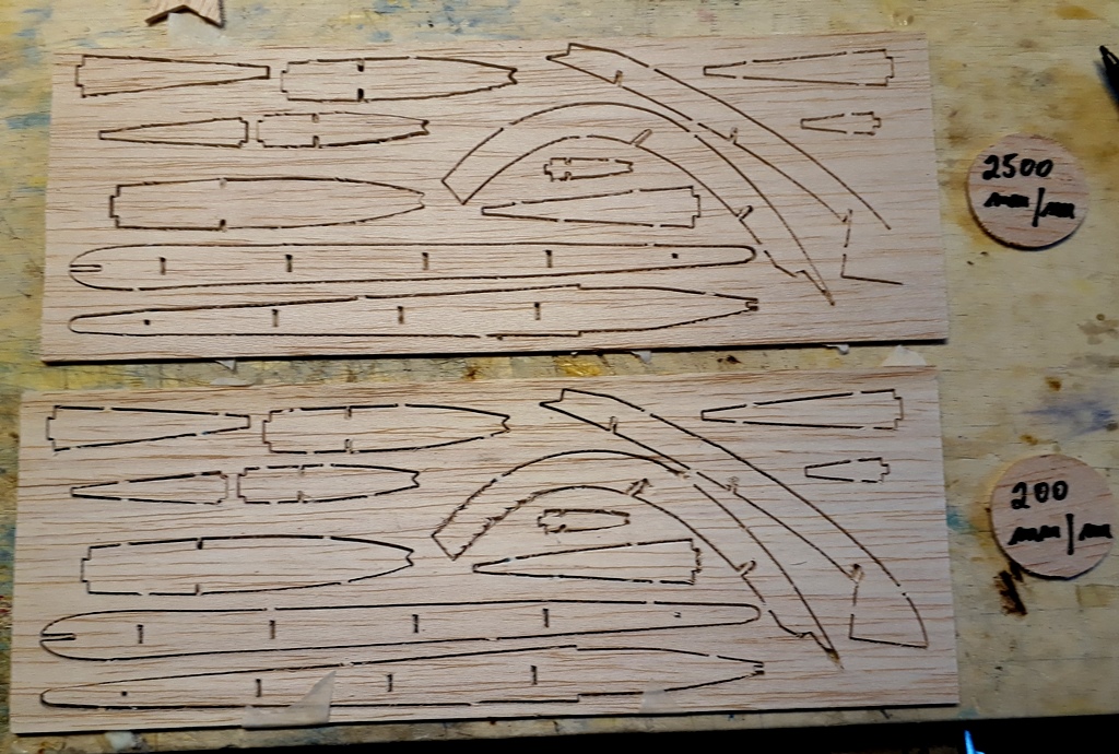 N'ayant que de petites pièces à découper et en quantités limitées, j'utilisais jusqu'à maintenant des vitesses de découpe très lentes entre 100 et 200 mm/mn