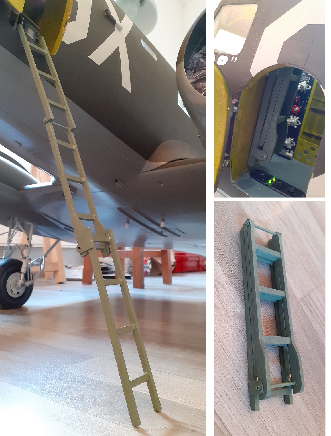 En parlant d'échelle, voilà une autre que je viens de finir, c'est l'échelle de secours! fonctionnel!, c'est sensé se sauver quand il y a un problème, personnellement je me sentirais en sécurité que les deux pieds posés sur le sol