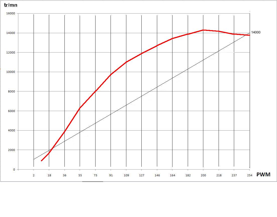 Les valeurs en ordonnée correspondent au contenu de l'octet qui gère le PWM ; valeurs entre 0 et 254.