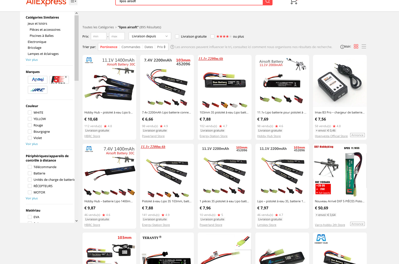 Y a-t-il quelqu'un ici qui a eu de l'expérience avec ces lipos genre "fusil AirSoft" ? (Ceux qui jouent aux "war games" les connaissent bien.) Ils semblent d'avoir les mêmes caractéristiques que les lipos habituels mais par leurs formes longues et affinées paraissent bien adaptés aux fuselages étroits comme les Lidls. Je me trompe peut-être ? En tout cas voici en image de quoi je parle :