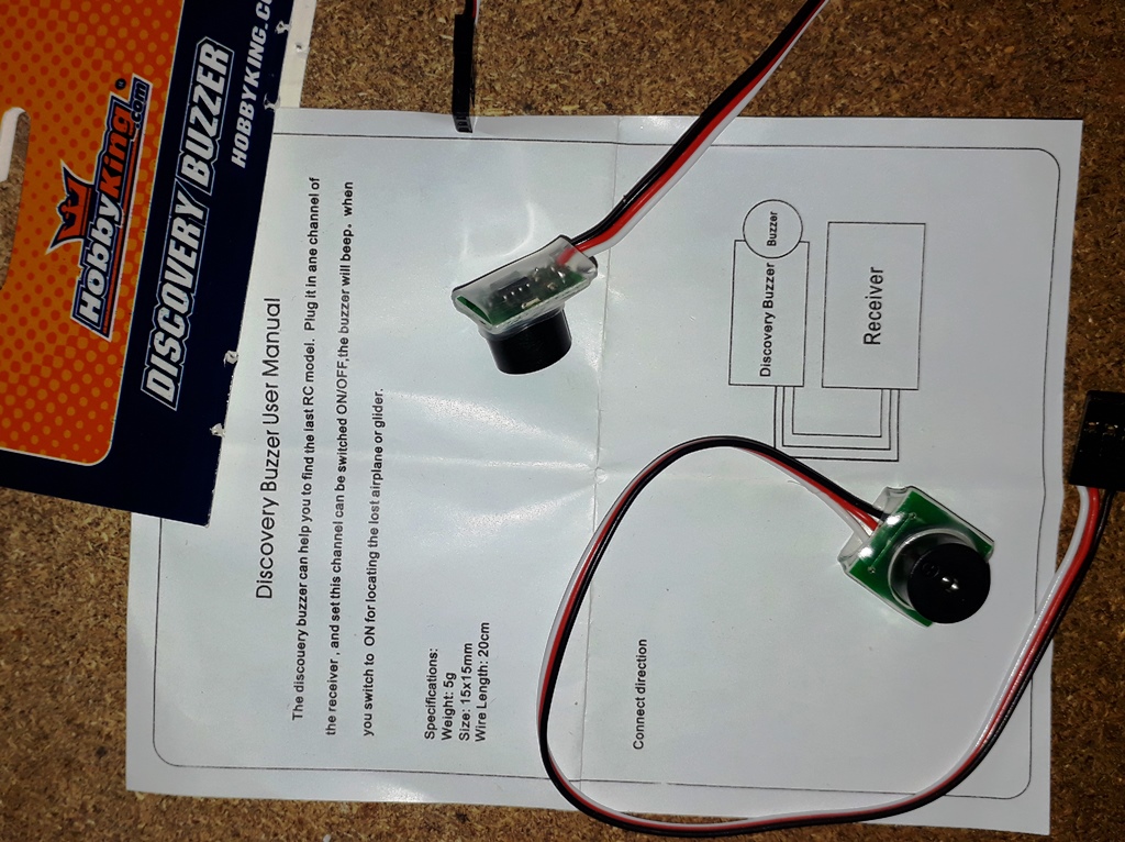 Je l'ai branché sur la voie 6 du Rx, libre, et de ce fait, je n'ai pas branché de servo en série, ce qui élimine le risque hypothétique de dysfonctionnement d'un servo en cas de panne du buzzer.
