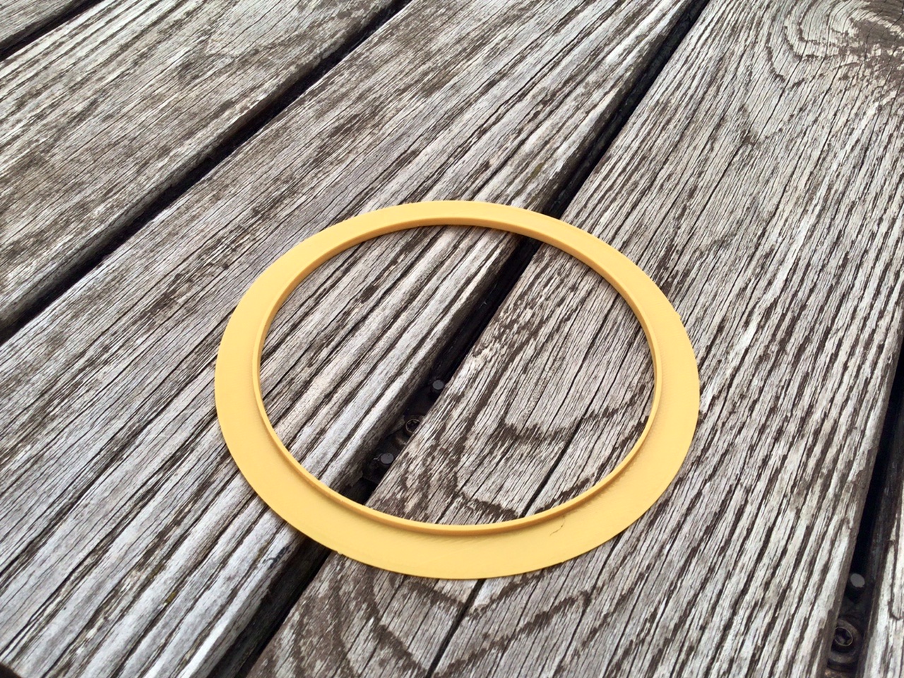 ) et l’imprimante 3D pour imprimer un cercle parfait qui prendra appui sur le coffrage. Voici le premier essai avec une épaisseur de 0,5mm (1mm pour la partie s’encastrant).
