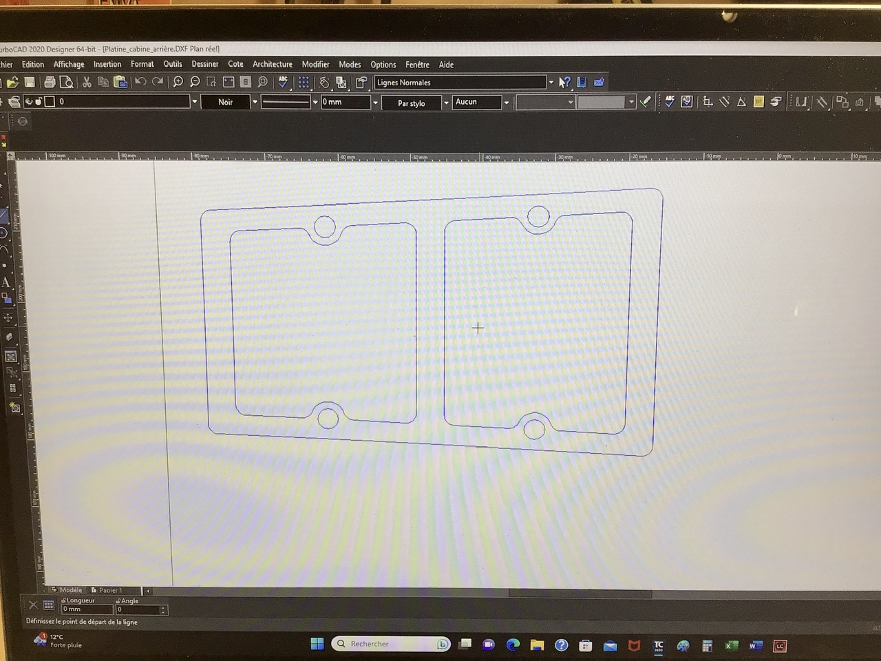 Une petite heure sur Turbocad et la platine est prête. Il faut encore que je dessine un arceau et elles pourra être fraisée demain