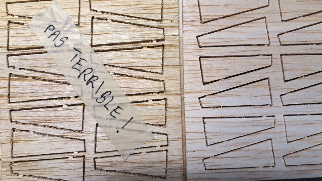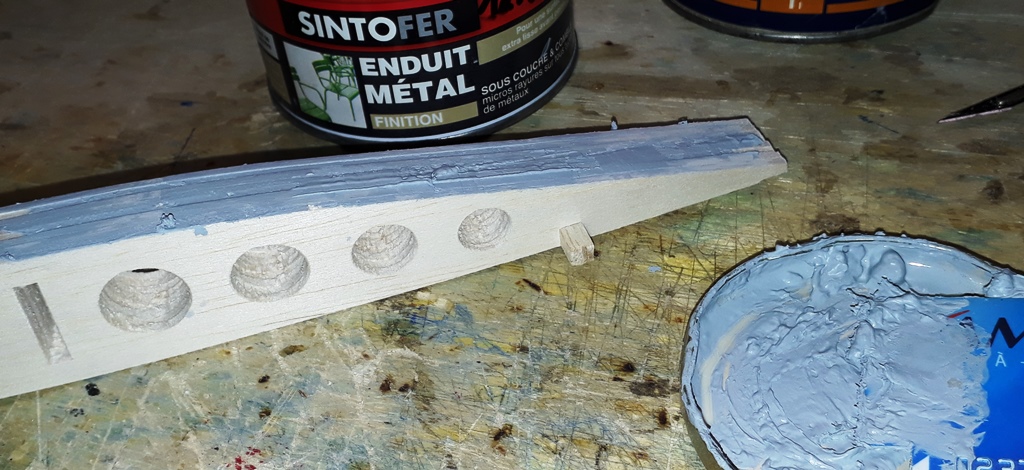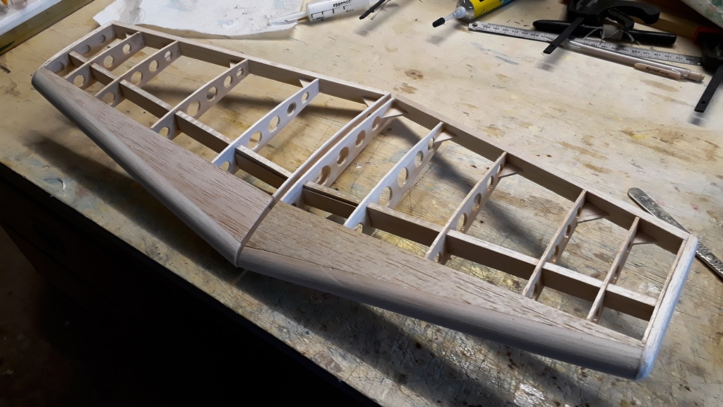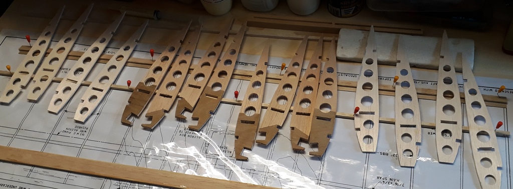 Ayant choisi du balsa 1 mm dense moitié moins lourd au m², j'ai préféré réaliser des nervures spécifiques pour éviter une "marche"