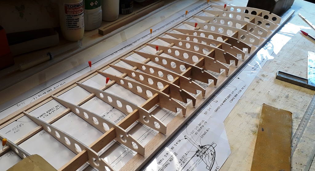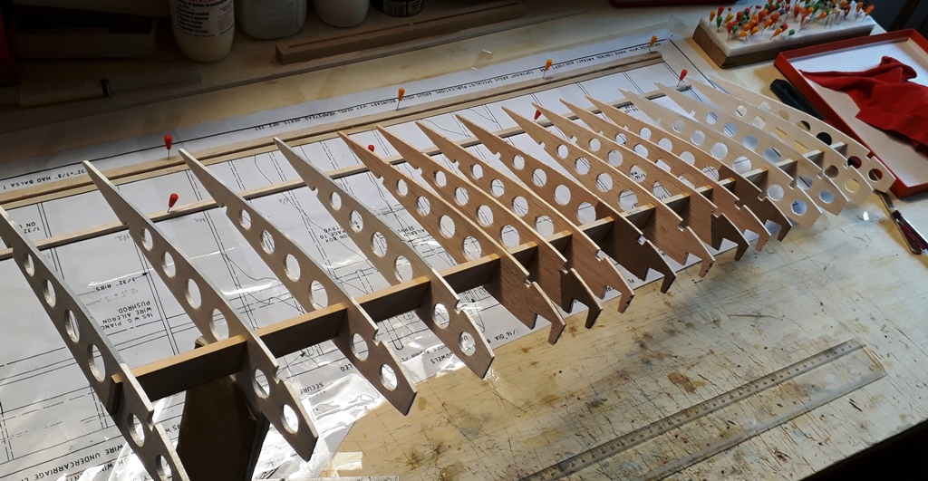 Voici les demi nervures de renfort N1 bis en cours de découpe