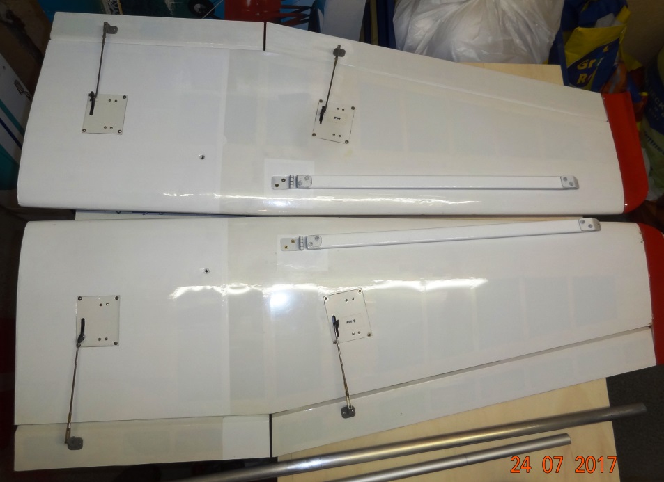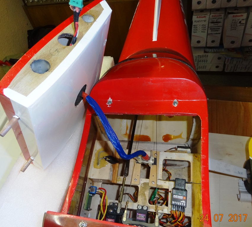 Mais du fait de la séparation de l'aile en deux parties il a aussi fallu modifier le câblage des 4 servos.