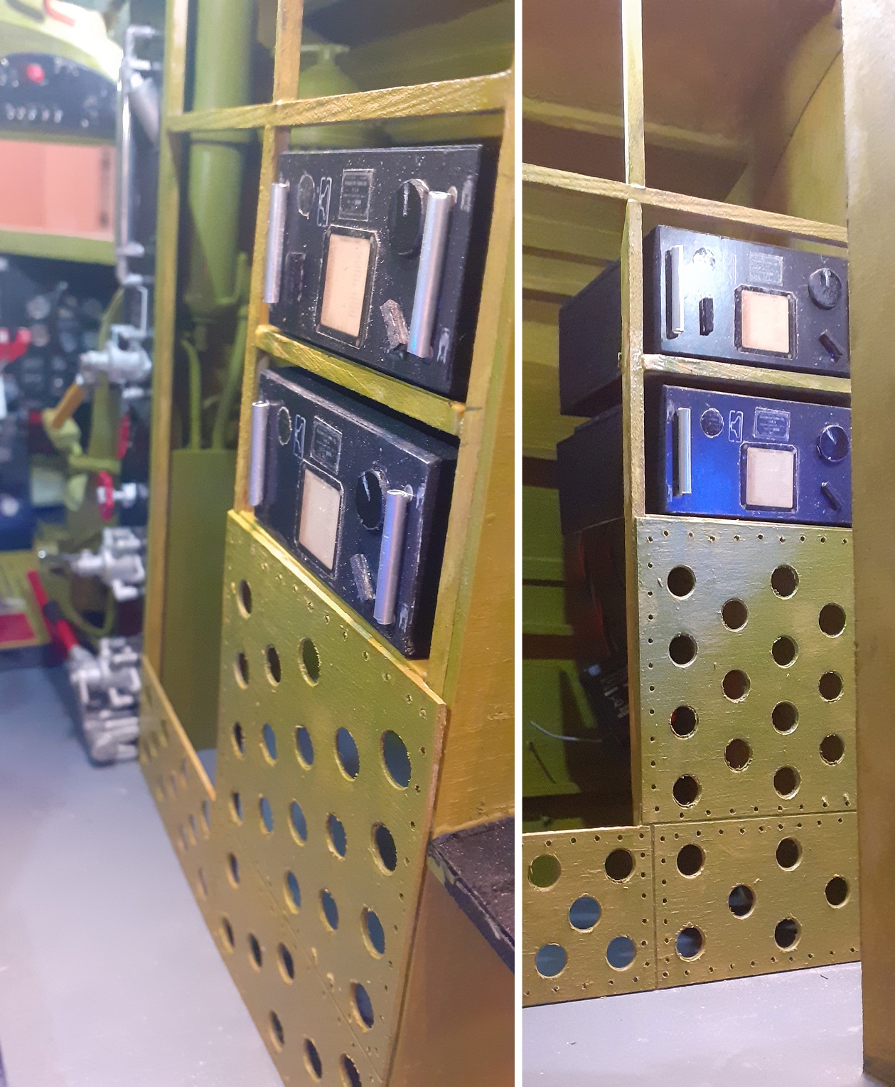 Voilà la station radio opérateur en cours de finalisation, tout n'est peut-être pas à l’échelle ni exacte, il manque encore un ou deux appareilles, le plus important c'est l'effet que ça donne, je suis plutôt content...