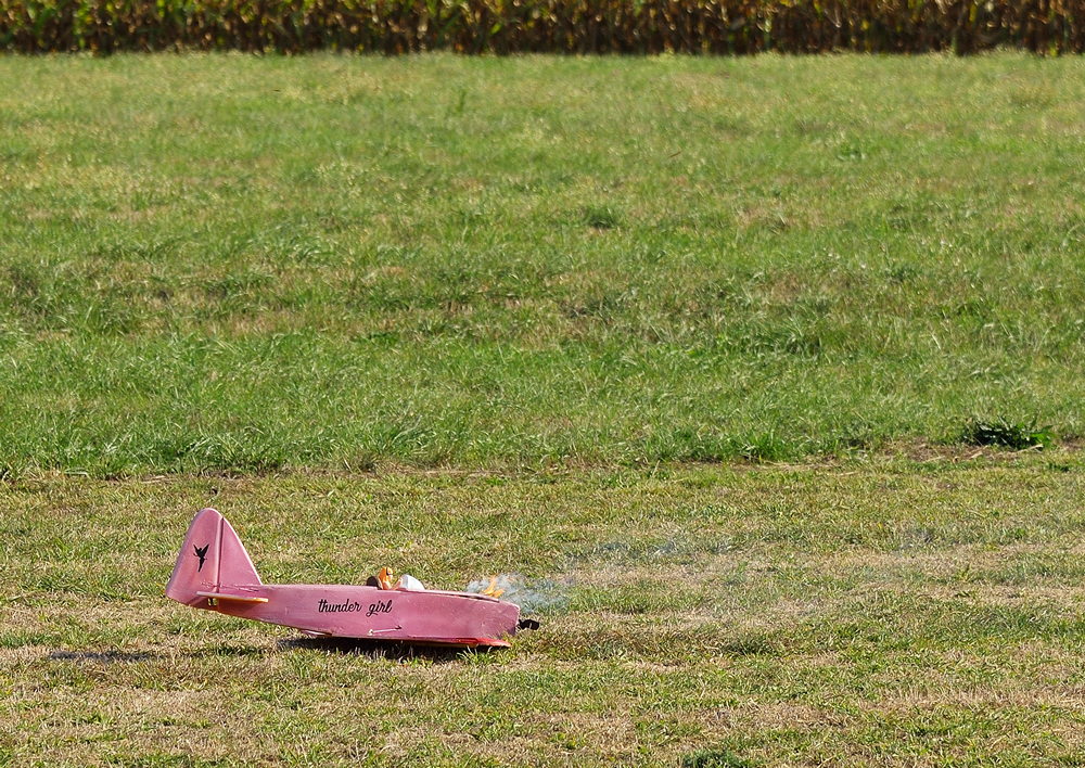 L'avant, en balsa a fait office d'amortisseur, un peu comme les voitures d'aujourd'hui, l'aile est aussi cassée au milieu et un demi empennage s'est détaché, mais rien d'insurmontable.