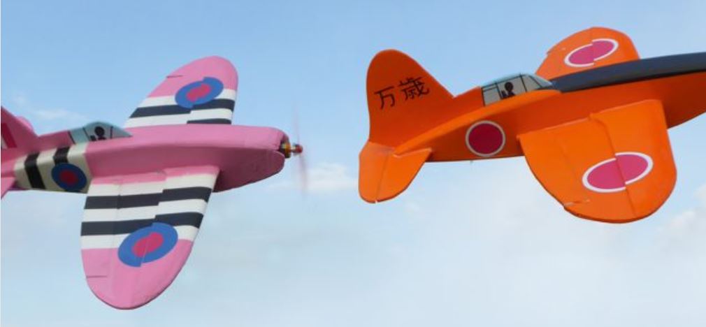 La vue de dessus du plan montre l'inclinaison du couple vers la droite pour respecter l'angle d'anti-couple nécessaire pour compenser l'effet de l'hélice qui aurait tendance à faire partir le modèle vers la gauche