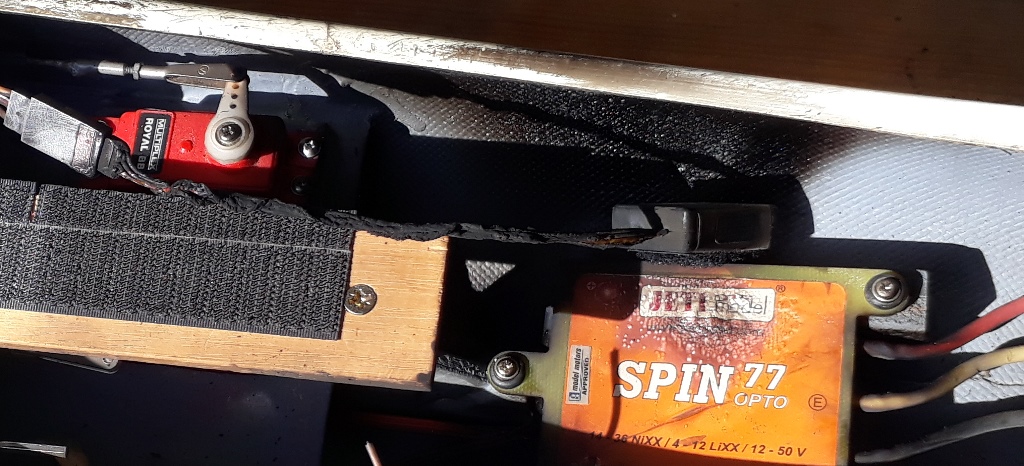 Le contrôleur est un JETI Spin 77 opto pour 77 A en continu alimenté par 5 éléments NiMh