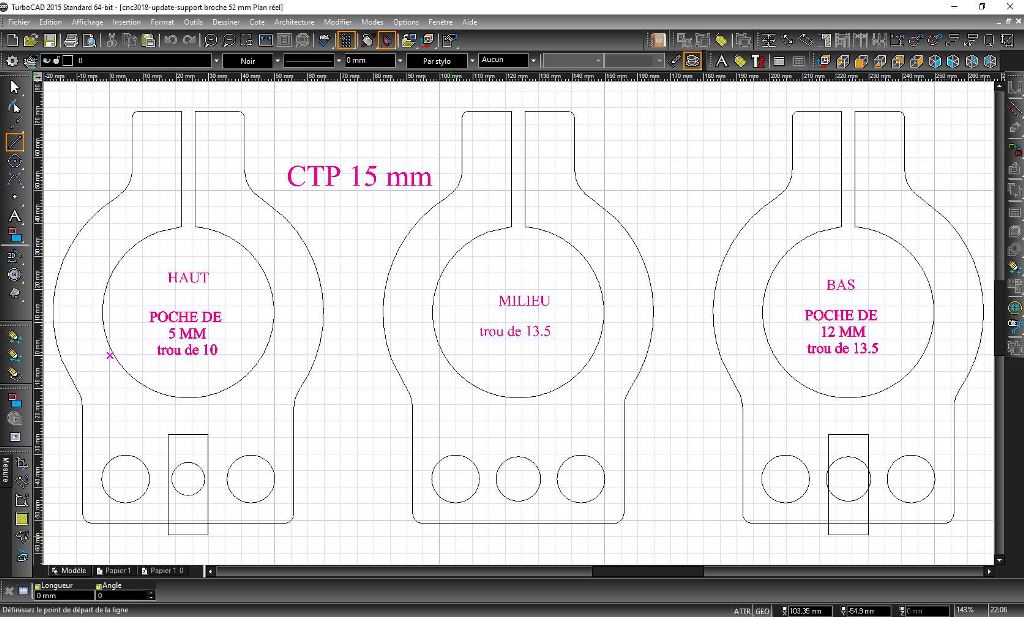 Je partage ton inquiétude pour découper cette épaisseur avec une fraise de 3.17 mm ici. Je l'ai déjà fait sur du CTP qui me semble plus dur et de 18 mm d'épaisseur, il est vrai que j'ai cassé une fraise et ici, avec la seule qui me restait je travaillais ans filet (je n'en ai pas eu besoin :lol: )