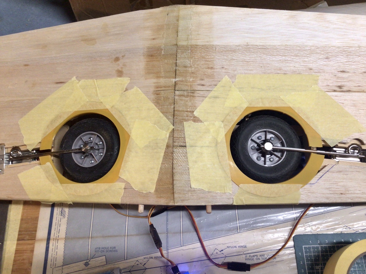 Le plus long a été de préparer les brides de fixation des trappes de train qu’il a fallu découper à la bonne épaisseur pour que les trappes affleurent au mieux le coffrage d’intrados.
