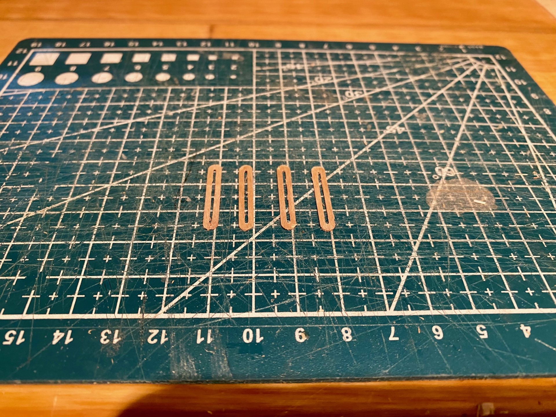 Les petites pièces en CTP 0,4mm découpées à la CNC avec une fraise au carbure de 0.8mm avec une avance de 50mm/min, ce qui permet une coupe très propre