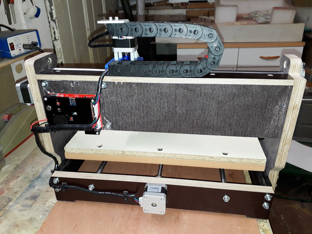 Yoyo m'avait convaincu sur la machine précédente qu'un chemin de câbles évitait une salade avec ces conducteurs et était surtout beaucoup plus esthétique. La 3018 n'en possédait pas, sa version ressuscitée, y a droit