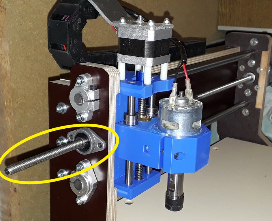 Je viens de recevoir les écrous coulissant pour rails V-Slot, ainsi que les roulements destinés à guider les vis trapézoïdale. Il ne me manque plus que les pièces d’accouplement bleues entre les moteurs et les vis trapézoïdale. J'ai donc utilisé provisoirement les pièces d'accouplement souples que j'avais décriées lors du montage de ma première CNC et qui me servaient de bouton de manoeuvre pour les vis.