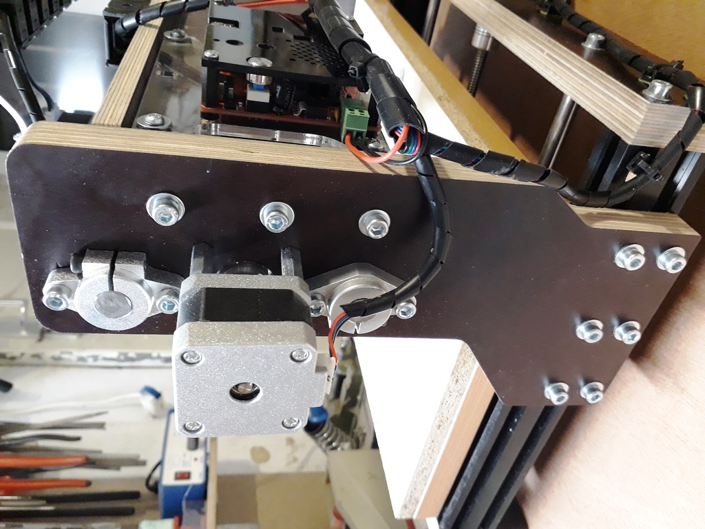 Avant d'assembler le tout j'ai voulu tester le support de broche alternatif sur le chariot Z. Il coulisse assez ferme et sans jeu, ce quil faut