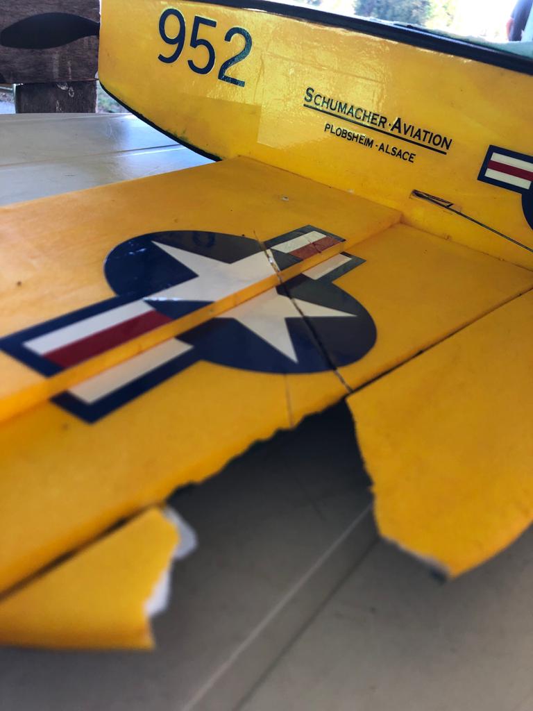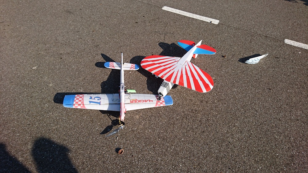 L'hélice de mon Thunderbob est reste fiché dans son aile et les 2 avions sont descendus en spirale.