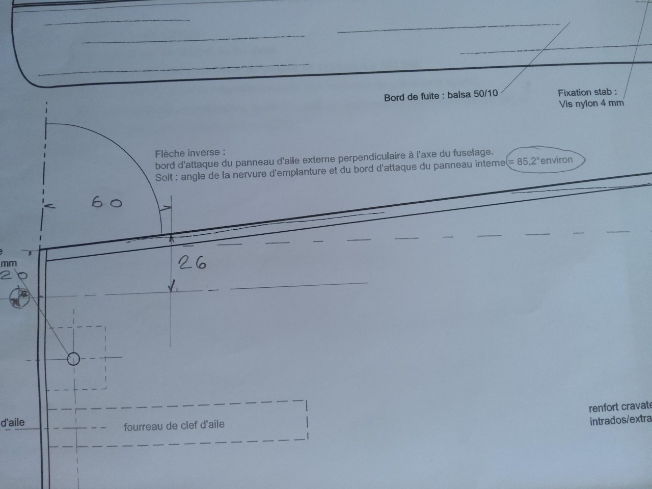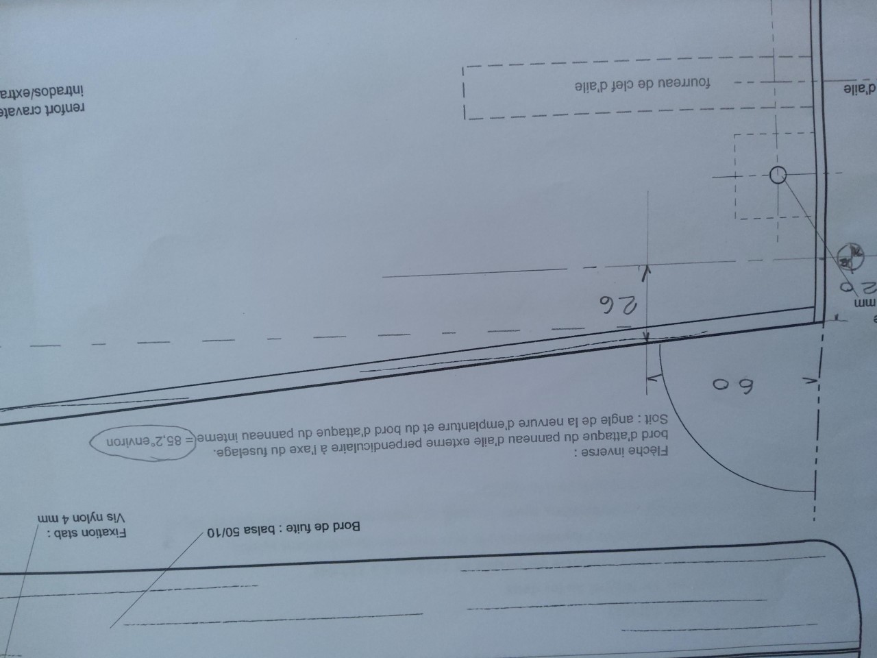 Oui Phil, je n'avais pas bien compris ta question. René a répondu, c'est bon. Par contre, j'ai une question par pure curiosité : pourquoi la nervure d'emplanture n'est pas rectiligne ? C'est peut être à cause de la forme du fuselage ? En tous cas, ça fait bizarre ....