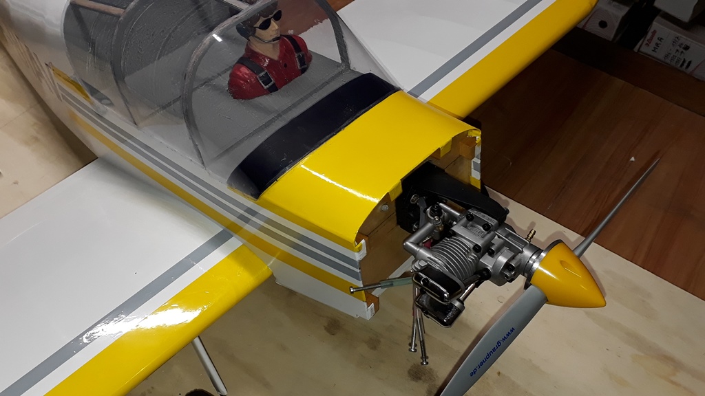 Ce soir plutôt que de continuer la finition de la verrière j'ai préféré monter le moteur pour avoir une idée du poids et surtout du centre gravité
