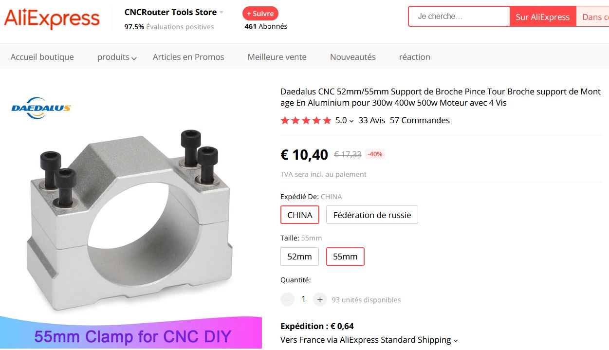 Tu évoques une broche brushless d'un diamètre de 55 mm. Tu as très certainement la même que Jipé et Moi, on en trouve très peu sur le marché. C'est celle que j'ai montée provisoirement sur la petite CNC pour essai. Aucune vibration ressentie.