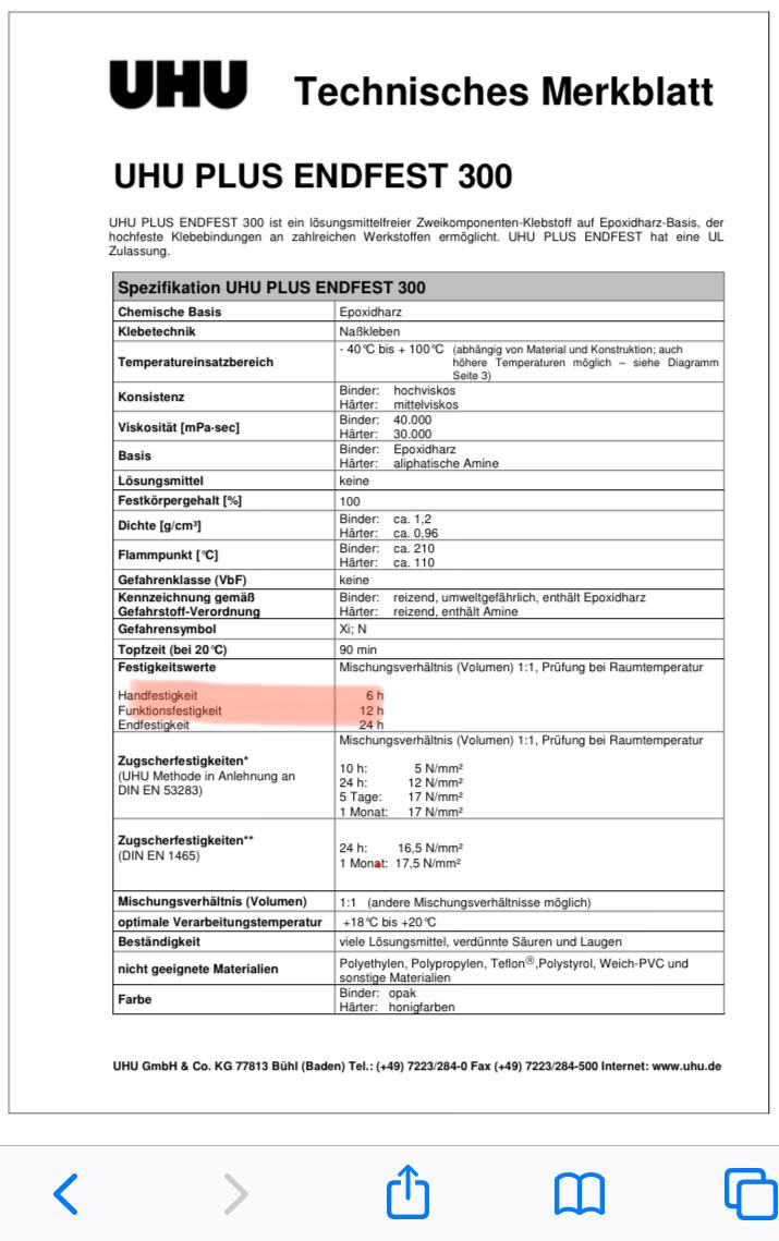 La notice du UHU Endfest 300... Voir temps de séchage.