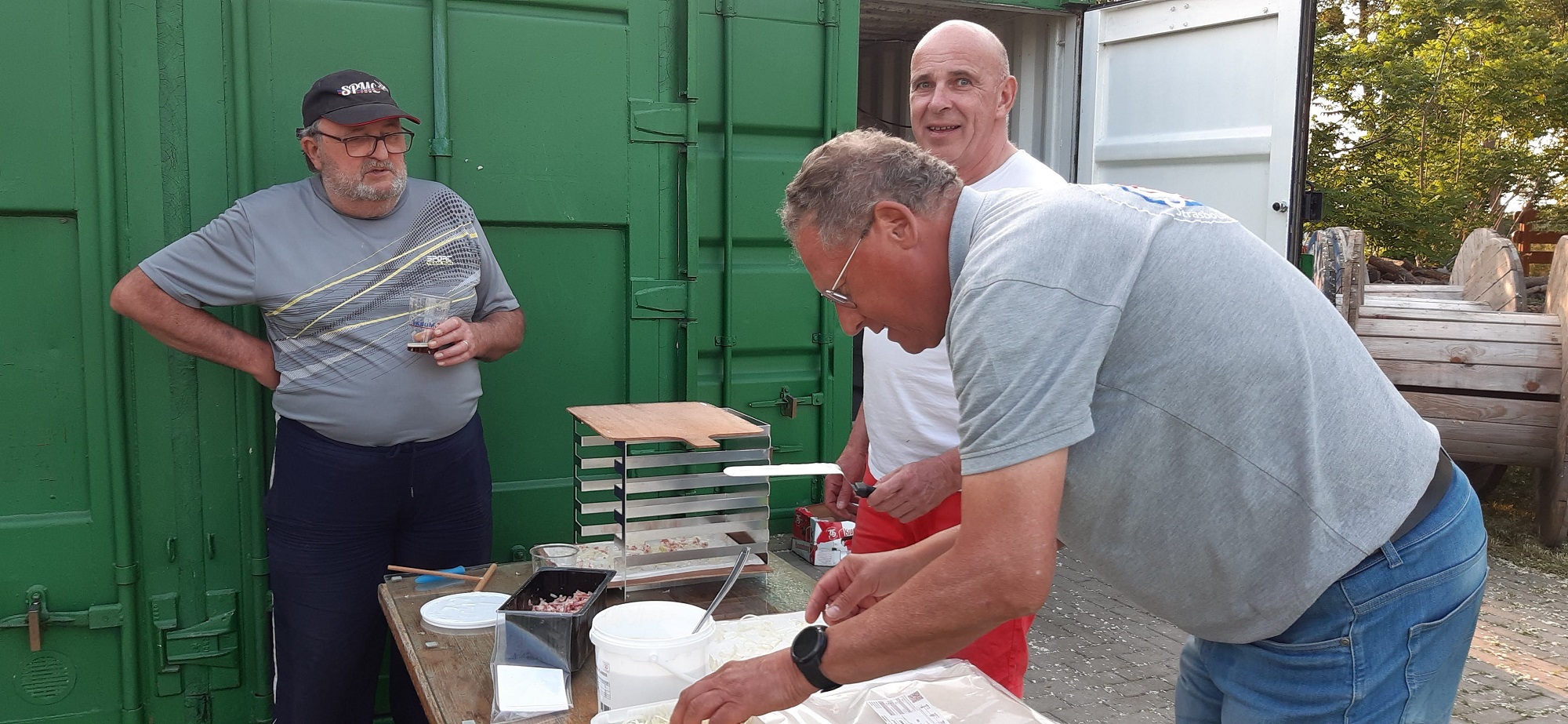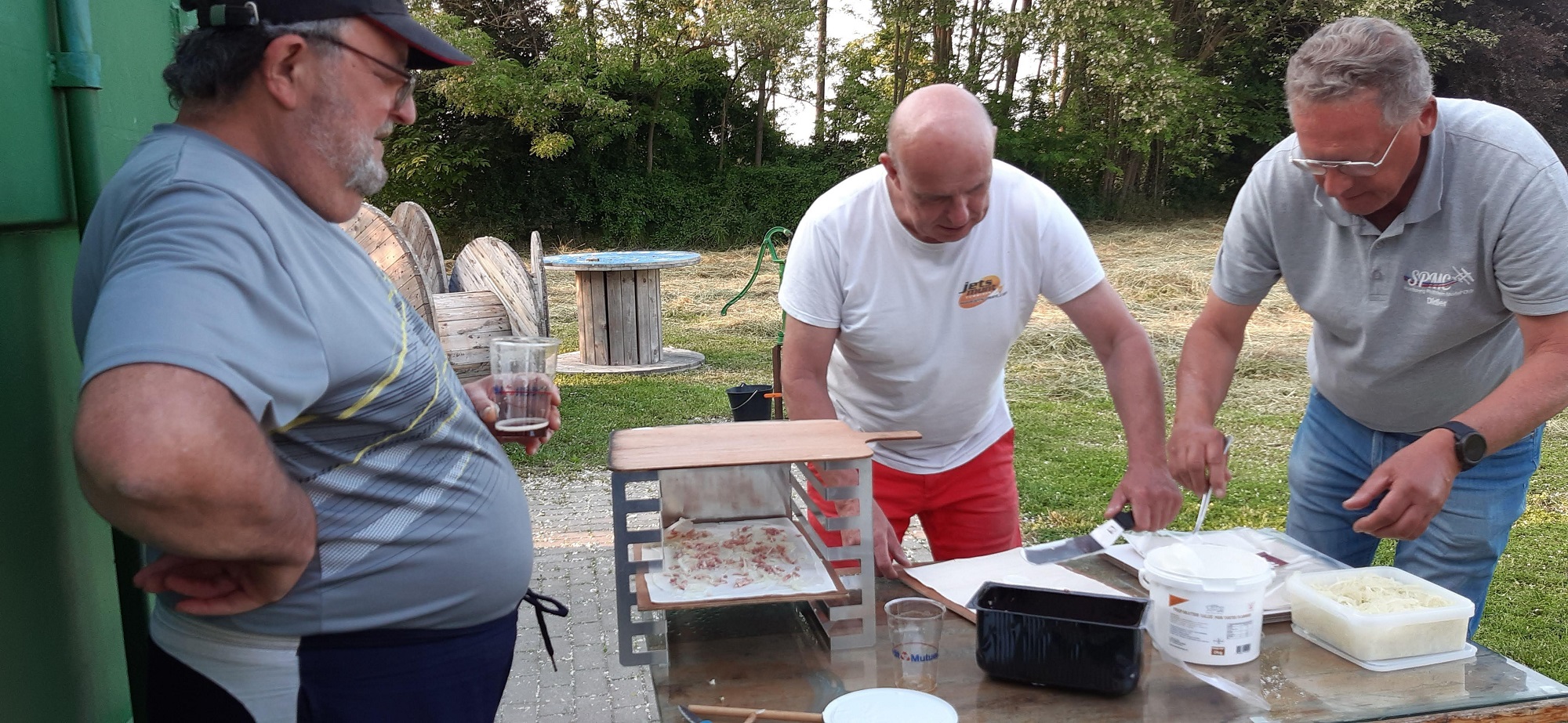 D'autres aidants s'affèrent à la préparation des tartes flambées, sous l'œil avisé de notre Michou. . . .