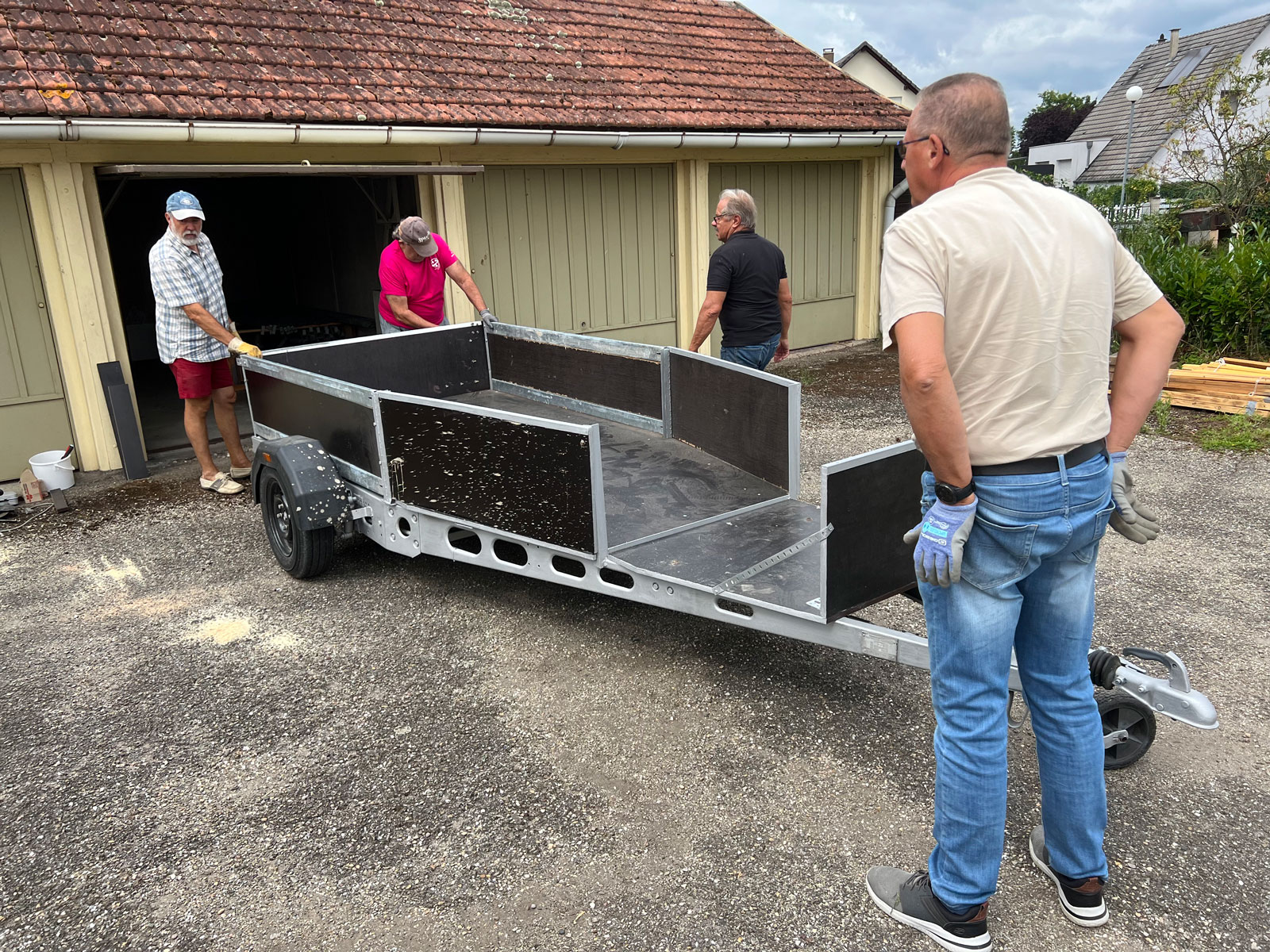 Mercredi 9 août grosse journée de garage pour une équipe de 5 qui ont vidé, réaménagé et rangé tout le garage pour y intégrer la nouvelle remorque qui a été elle aussi agencée pour accueillir tous les éléments du chapiteau pour nos prochaines manifestations. C'est tout beau et tout propre !