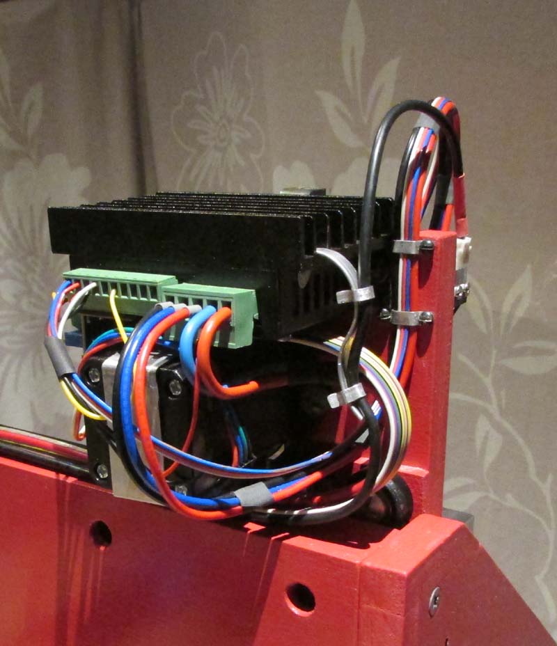 Je fais une petite pose dans mes T.I.G. pour reprendre la construction. Je m'attaque à la pose du faisceau électrique en partant du haut, c'est à dire des axes X et Z situés sur le portique.