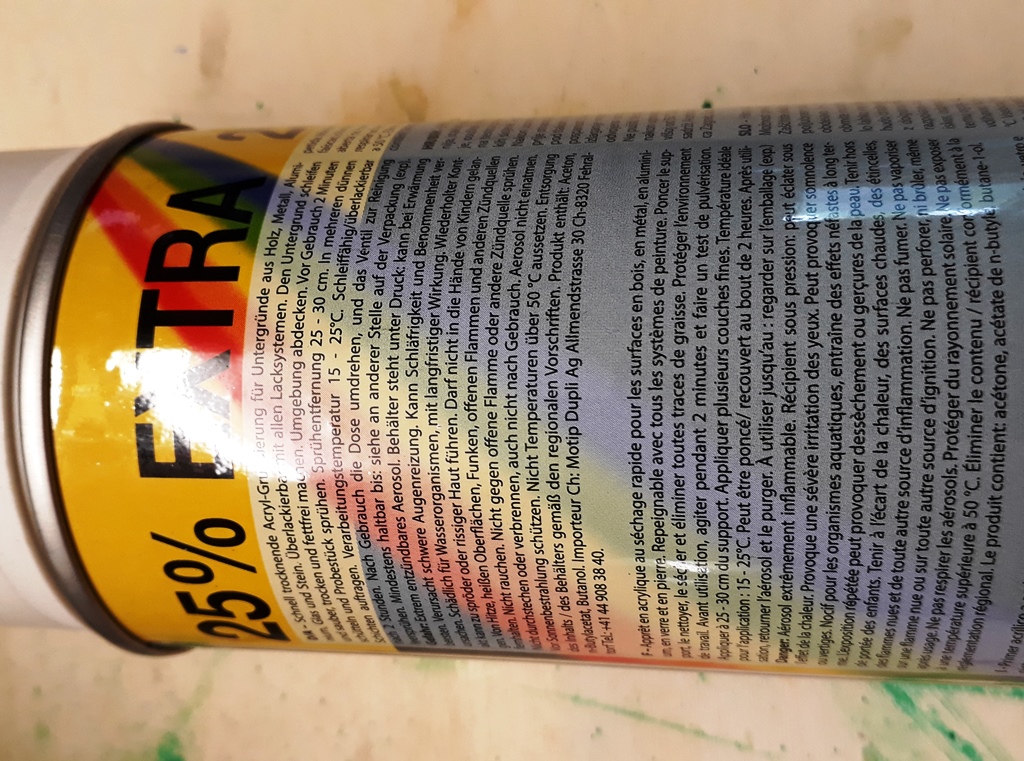 Mais ce sont surtout les 2 autres qui ont été en contact avec la peinture finale oracover. Il s'agit de 2 bombes soldées 2 € chez Ildl, il y a quelques années déjà ! Ils ne sont peut-être pas la solution idéale question de pouvoir couvrant, mais j'ai obtenu le résultat.