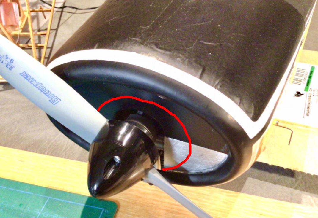 Capot terminé ;), j’ai masqué l’avant pour réduire l’entrée d’air, mais une fois l’hélice et son cône, montés, je réalise que l’ouverture est trop faible, il faudra agrandir l’entrée d’air.
