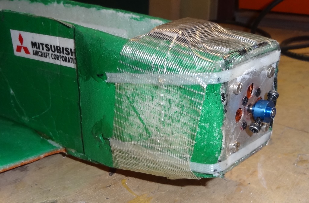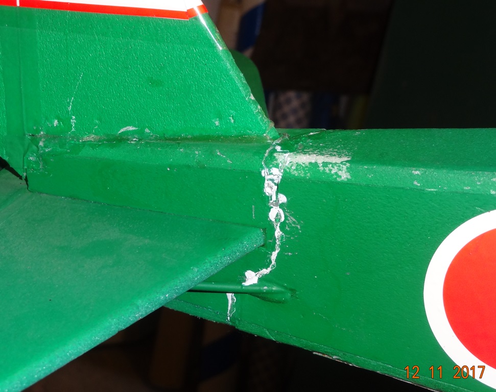 Pendant ces travaux de renforcement j'ai découvert une "morsure d'hélice" sur une extrémité d'aile. Je n'en connais pas l'auteur, mais j'ai bien une petite idée ... :lol: