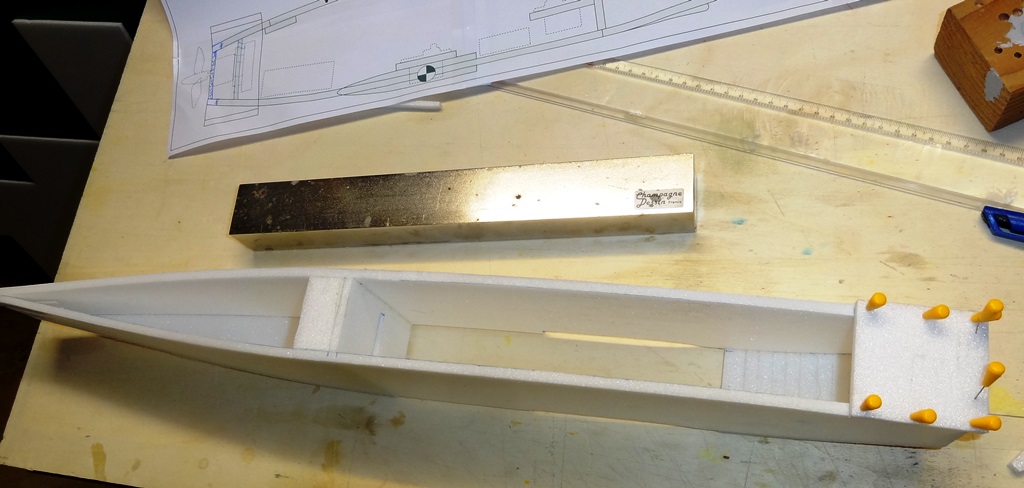 Pour les partie cintrées j'ai choisi de faire des traits de scie dans le dépron, en partie interne. Avant collage j'ai rajouté de l'uhu por dans les rainures pour redonner ensuite de la solidité.