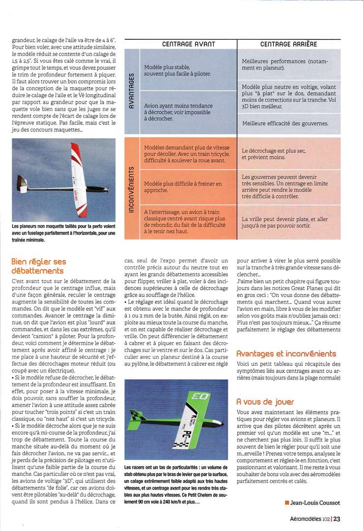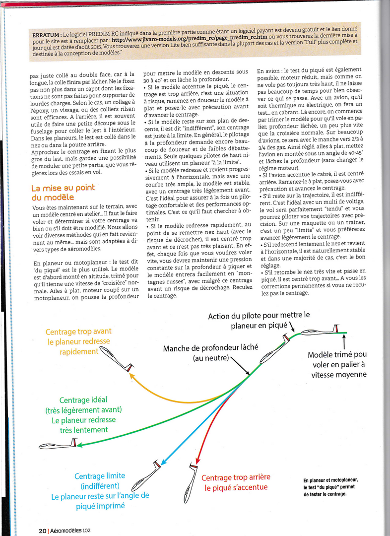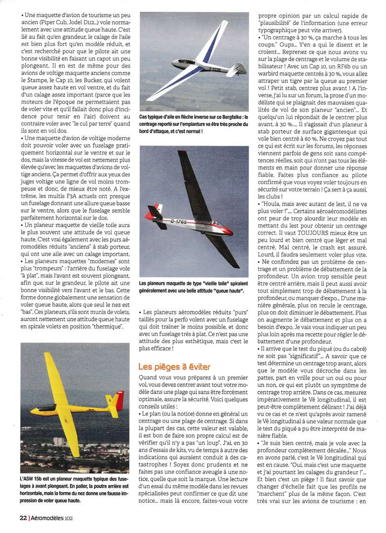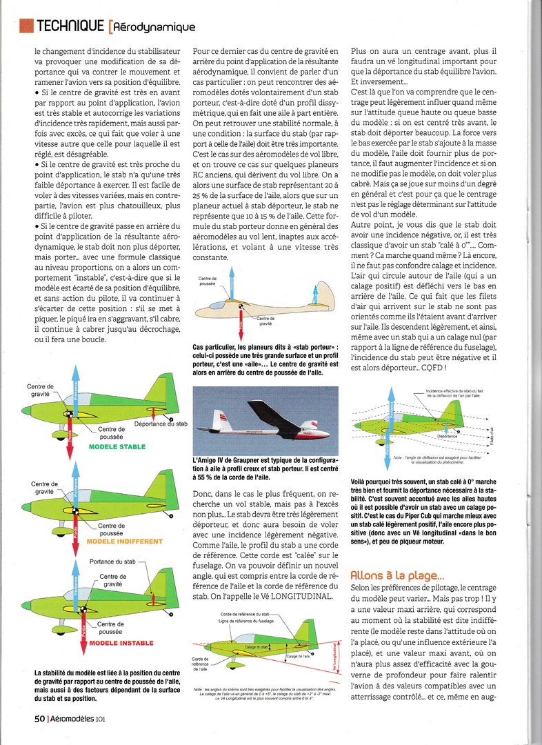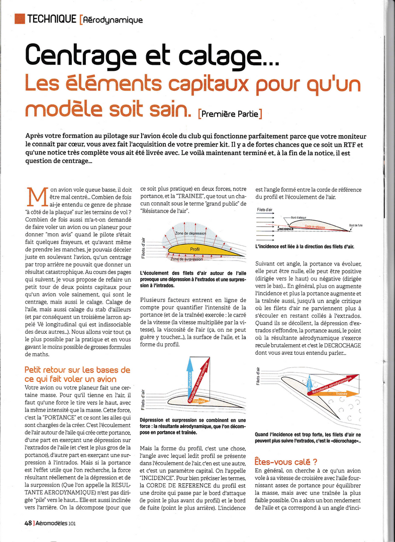 A lire et à relire (souvent...) et c'est ce que je vais faire dès que j'aurai retrouvé ma loupe .........C'est très bien expliqué, sans formules mathématiques fumeuses, et d'une façon très complète. Ca va faire grincer quelques dents car quelques idées reçues vont en prendre un bon coup........(queue basse, centré trop arrière par exemple .....) Il me semble qu'il y avait encore une page, à la fin, qui traitait de la notion de "volume de stab". Mais on peut faire sans, c'est utile surtout à ceux qui conçoivent leur modèle de A à Z.
