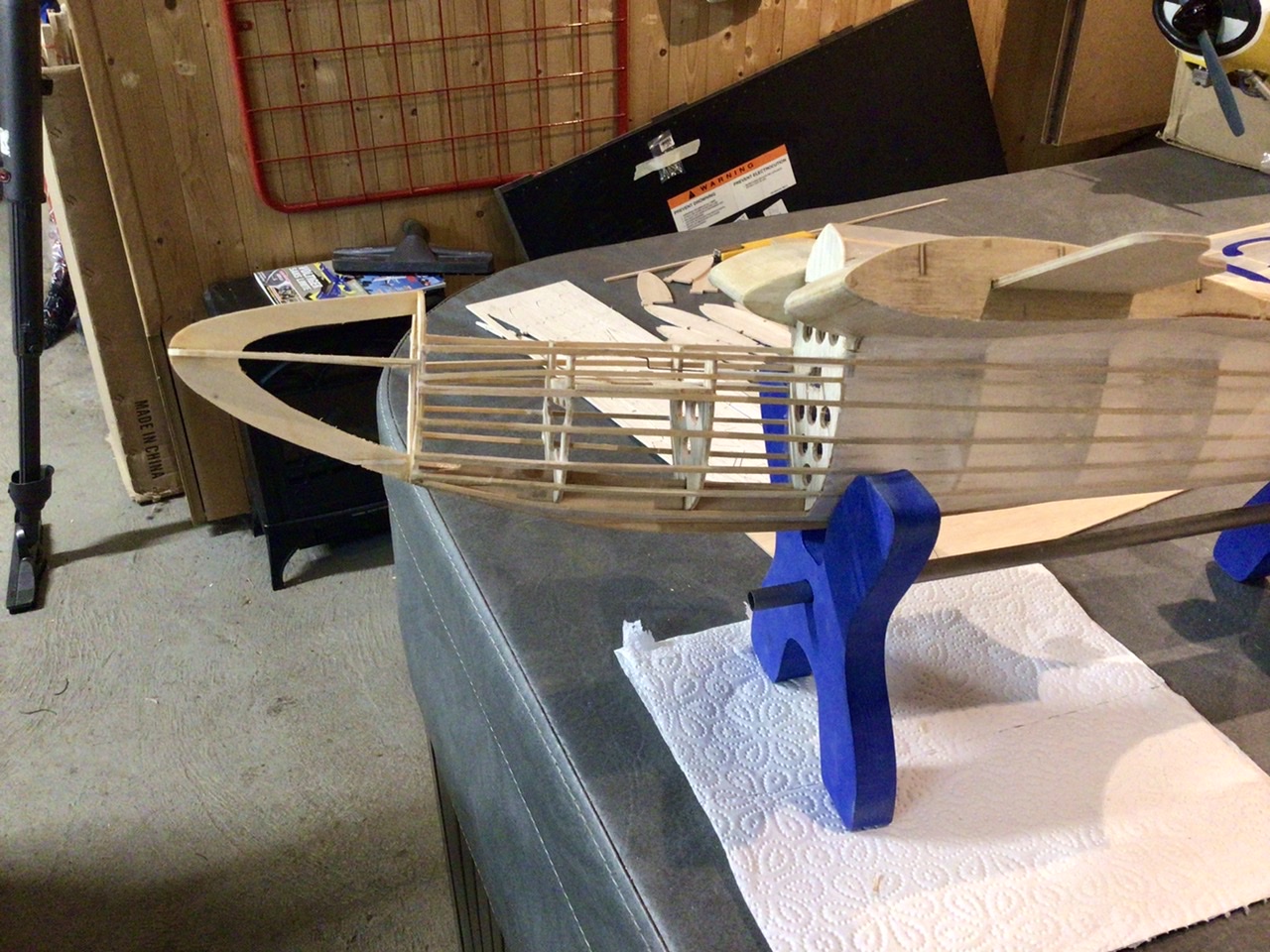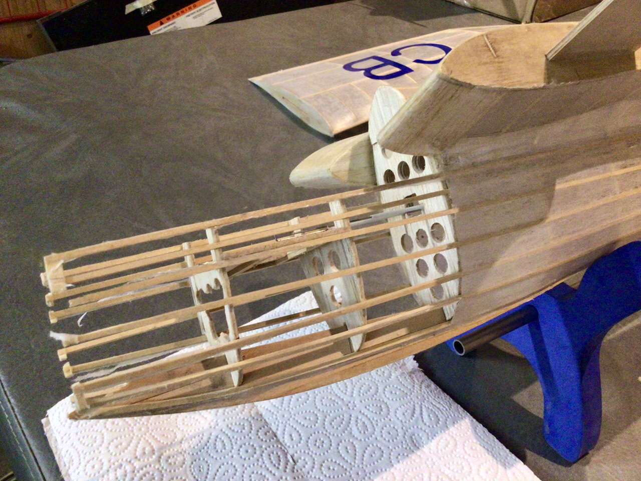 Les gabarits formant le nez ont été collés en place, c’est là qu’on apprécie la précision d’une CNC qui permet un ajustage au centième. Une goutte de cyano fluide et c’est verrouillé.