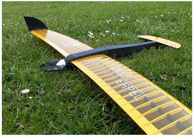 Tim Weissbach a juste retourné l'aile et supprimé la grande dérie qu'il a recollée moitié / moitié sur les saumons de l'aile. On retrouve même les couleurs noir et jaune pour la déco.